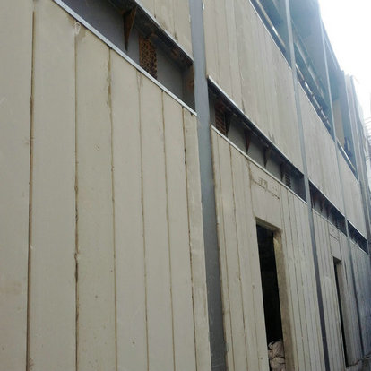 加氣混凝土板材外墻板是蒸壓加氣混凝土板的一種。它是以硅質(zhì)材料和鈣質(zhì)材料為主要原材料,根據(jù)設(shè)計(jì)要求添經(jīng)防腐處理的鋼筋網(wǎng)片,再經(jīng)高溫高壓蒸壓養(yǎng)護(hù)而成的一種多氣孔板材,板材外側(cè)有榫槽的一種新型綠色環(huán)保墻體材料。
